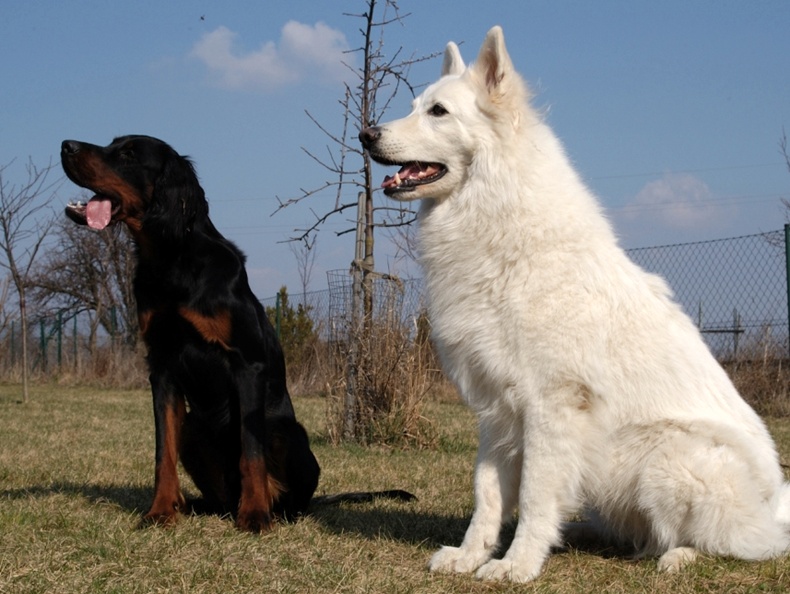 Links: Einmal jährlich gibt es ein Wiedersehen mit Jack Daniels, der mit Frauchen aus Italien anreist. Rechts: Kiruna - eine tolle Hündin