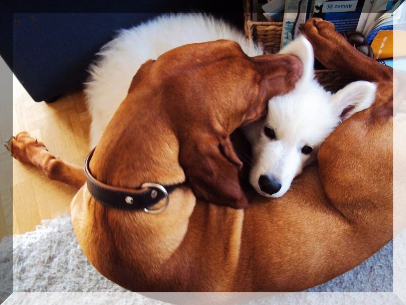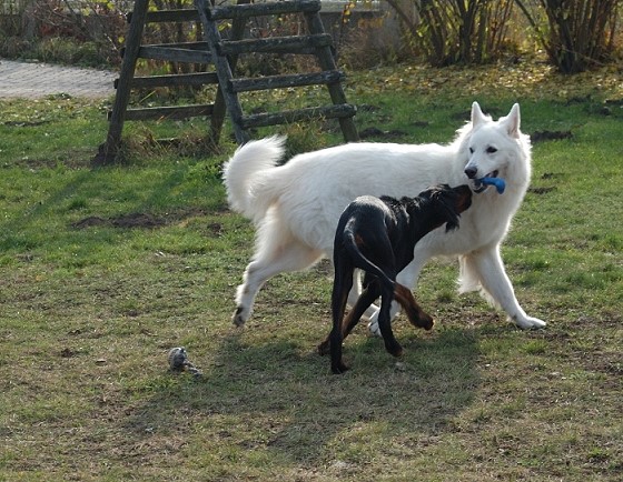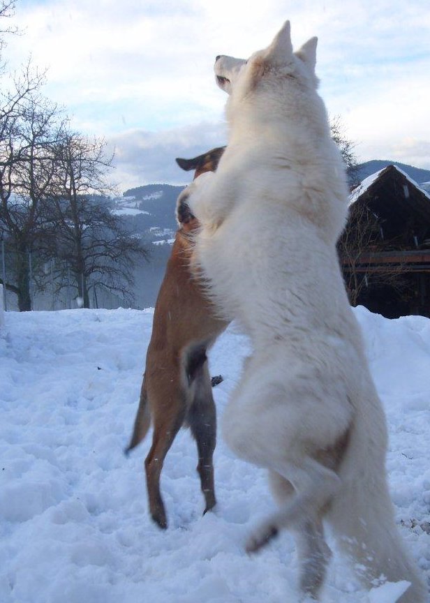 sein Partner Pollux sind bereits die besten Freunde....Keico hat mit Marco schon die ersten Rodelpartien hinter sich