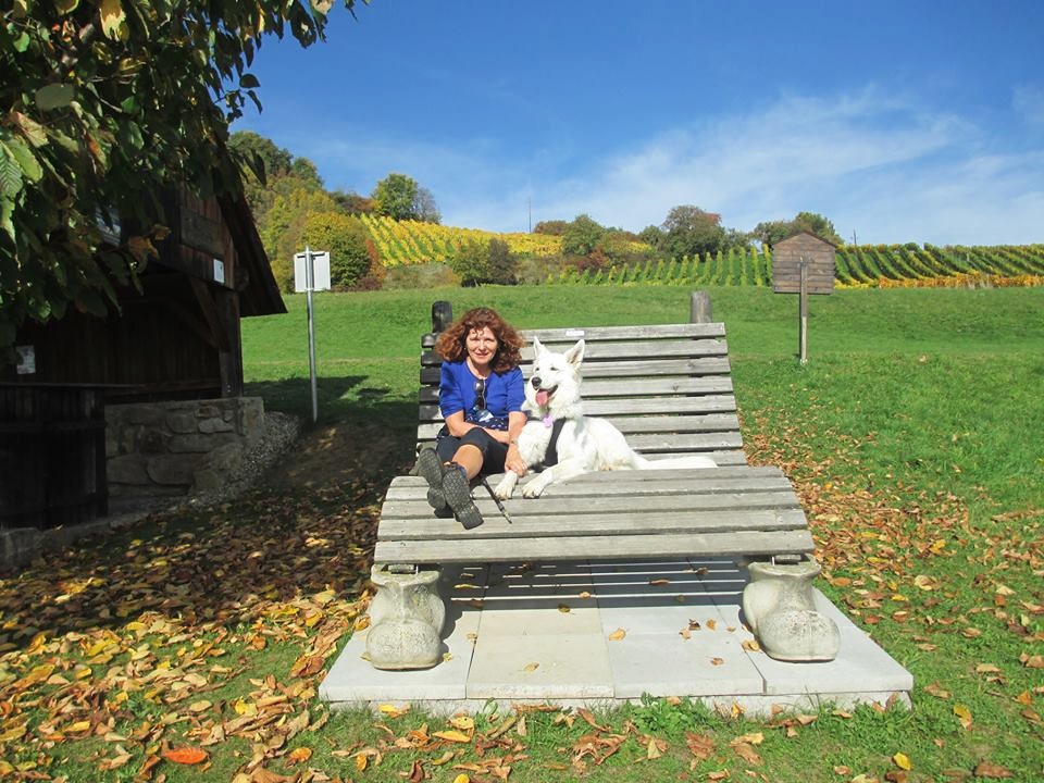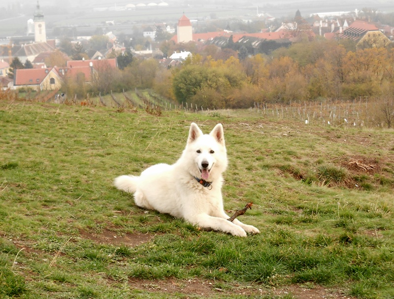 Links: Herbstwanderung von Gerti mit Lily Marleen im Weingebiet. Rechts: Lilys Bruder Lennox, der für Doris und Ernst einfach nur "der Beste" ist