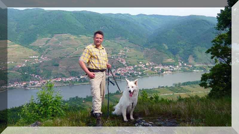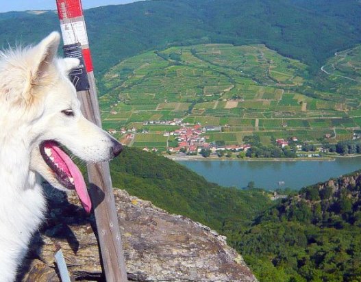 Jukon und Inja präsentieren sich medienwirksam bei einer Bergwanderung Nähe Eggenburg mit Verena und Günther