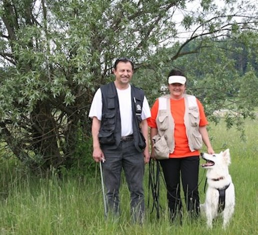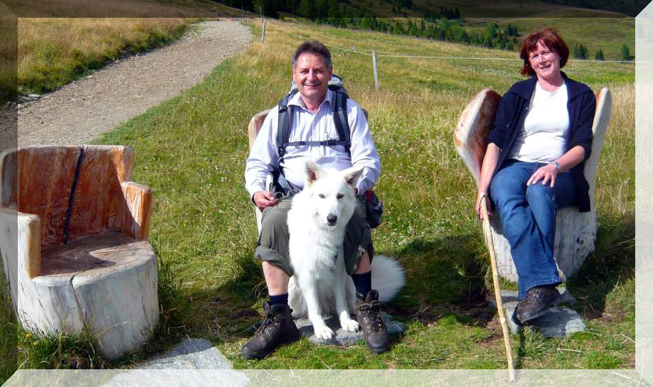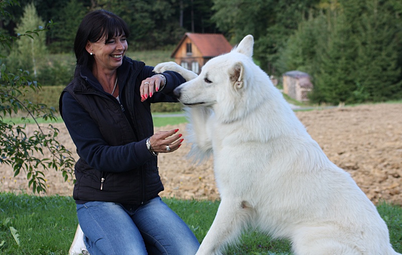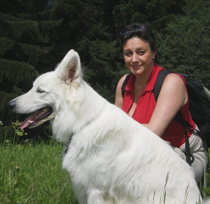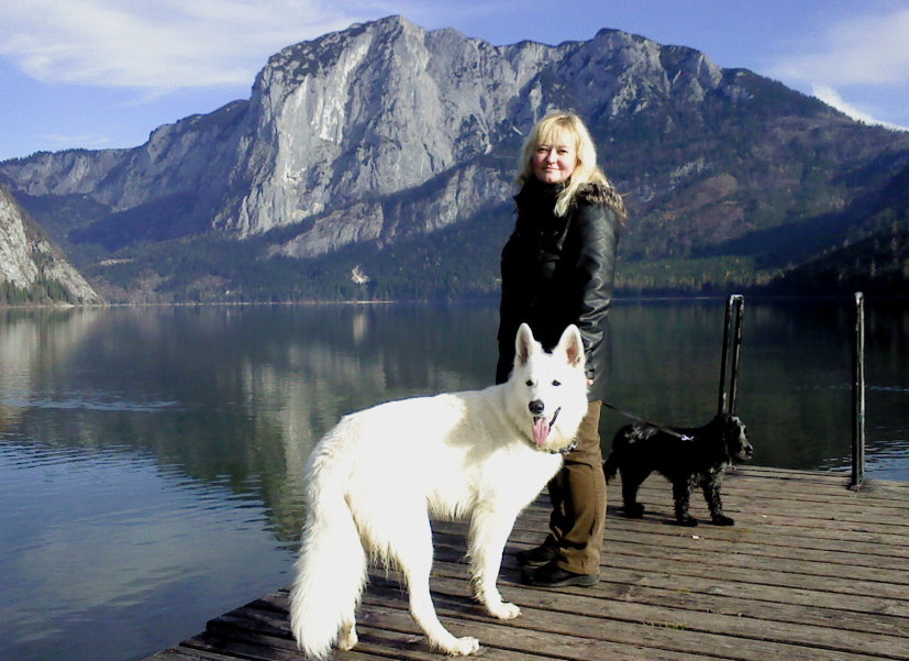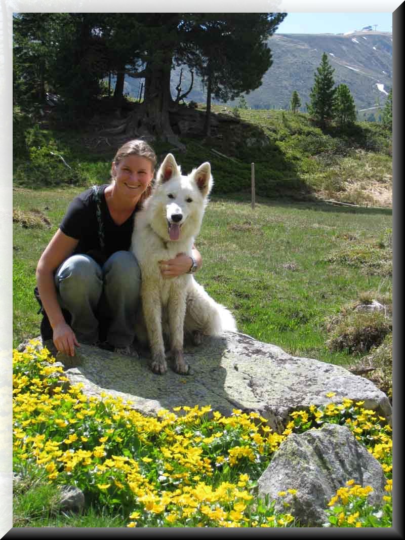 Links: Maruk meets Jaron - In der Obersteiermark haben sich die beiden Rüden zu einem Spaziergang getroffen. Rechts: Edith mit ihrem geliebten Maruk