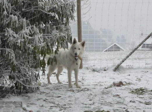Links: Lily Marleen staunt über den ersten Schnee im heurigen Jahr. Rechts: Freude über ein aktuelles Foto von Ghost aus Frankreich - Merci bien Nadine!