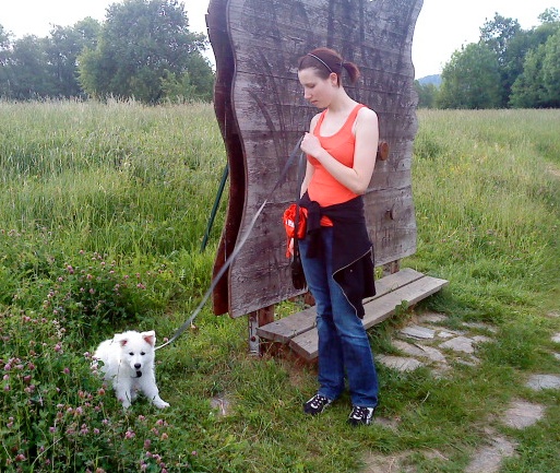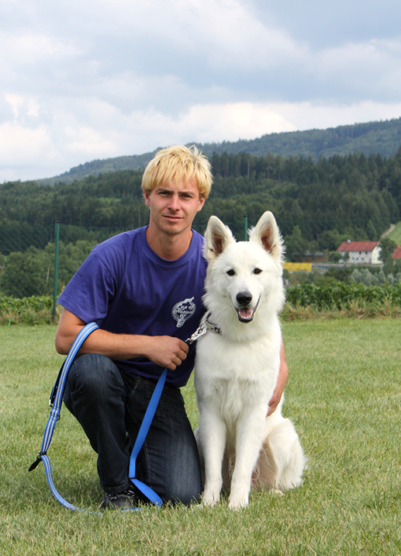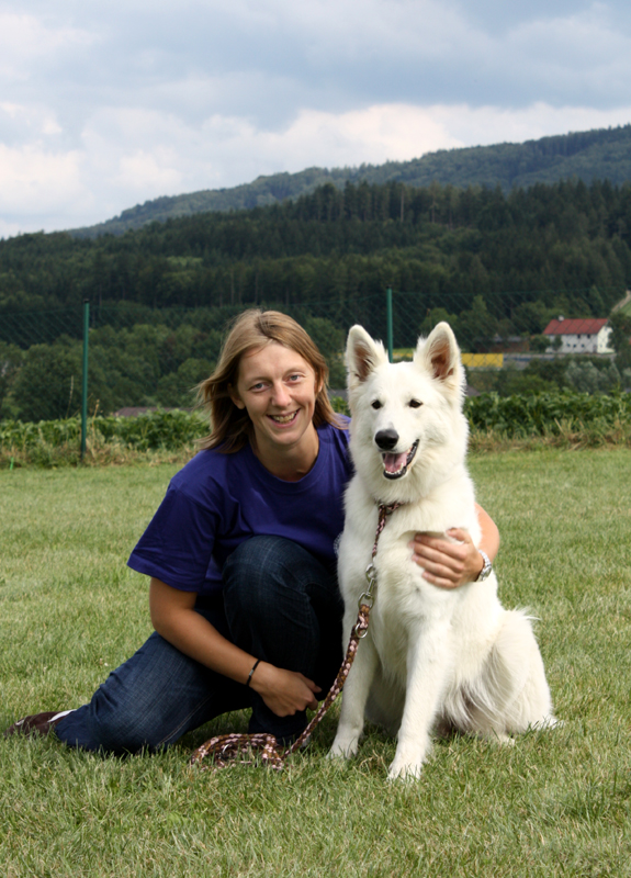 Inzwischen macht Anja mit ihm die ersten Gehversuche in der Hundeschule Ebreichsdorf