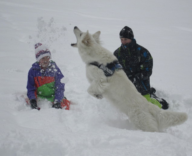 Bei so viel Schnee macht das Herumtollen einfach Spaß: