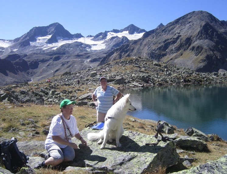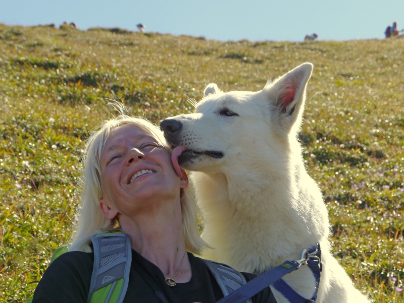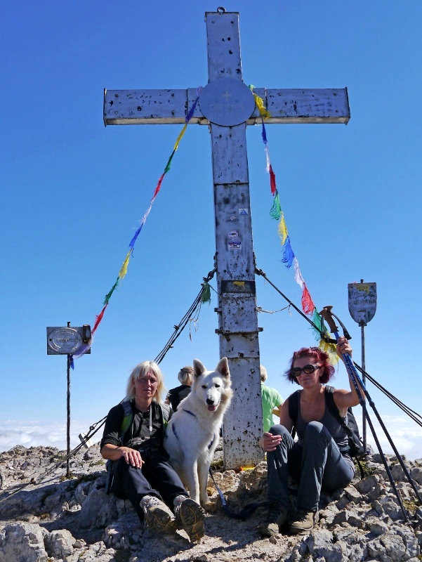 Und hier gleich noch einige sportliche Bergfexe: Links Kiruna mit Eva auf dem Naunspitz und rechts Maruk mit Frauchen Edith