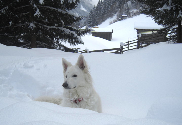 Egal, ob im Winter auf ihren Schitouren oder im Sommer auf der Pfeishütte - Lanouk ist ständiger und treuer Begleiter von Vroni und Michael