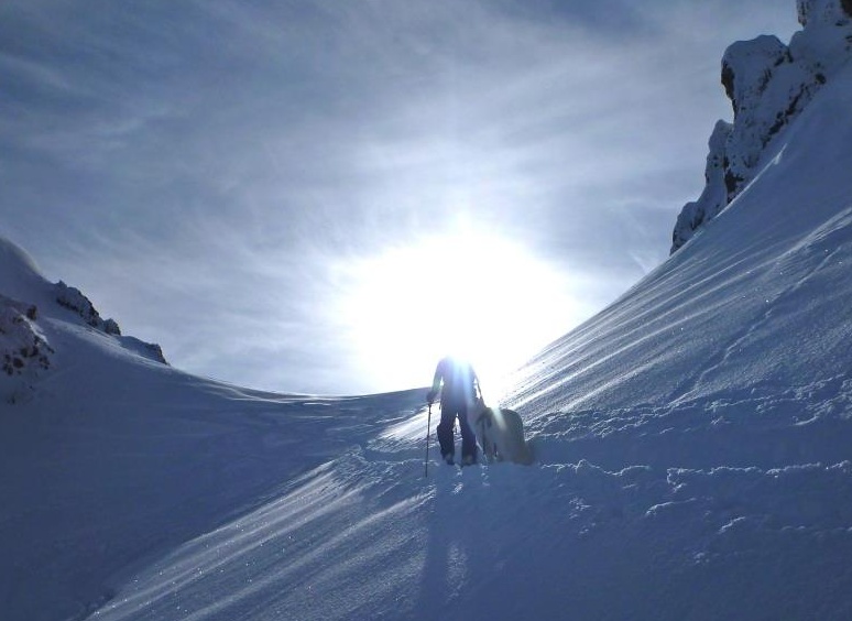 Mit der Leichtigkeit einer Gemse ist Lanouk bei allen Berg- und Schitouren der ständige Begleiter von Michi und Vroni