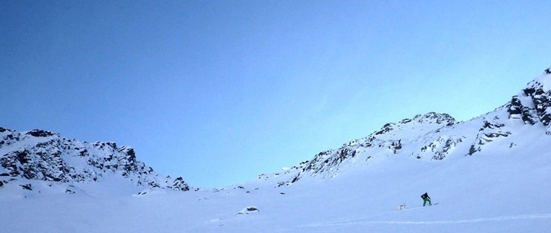 noch dezent zurück. Für Vroni und Lanouk (rechts) sind die Bedingungen für Schitouren natürlich weiter ideal, wobei die manchmal