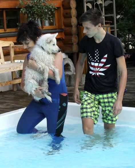Nur Positives hört man auch von Nanuk, um den sich natürlich derzeit alles dreht und der auch schon ins Swimmingpool durfte
