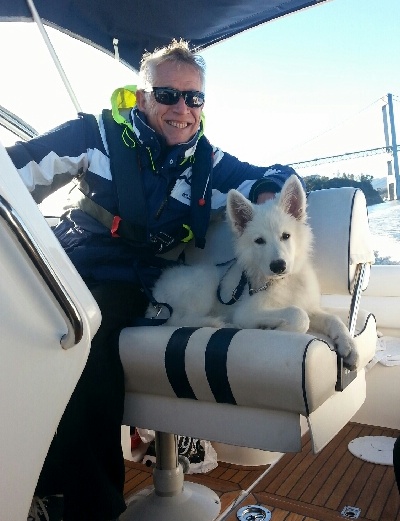 und der hübsche Bursche ist in allen Situationen einfach die Ruhe selbst - hier hat er den Kapitänssitz beschlagnahmt