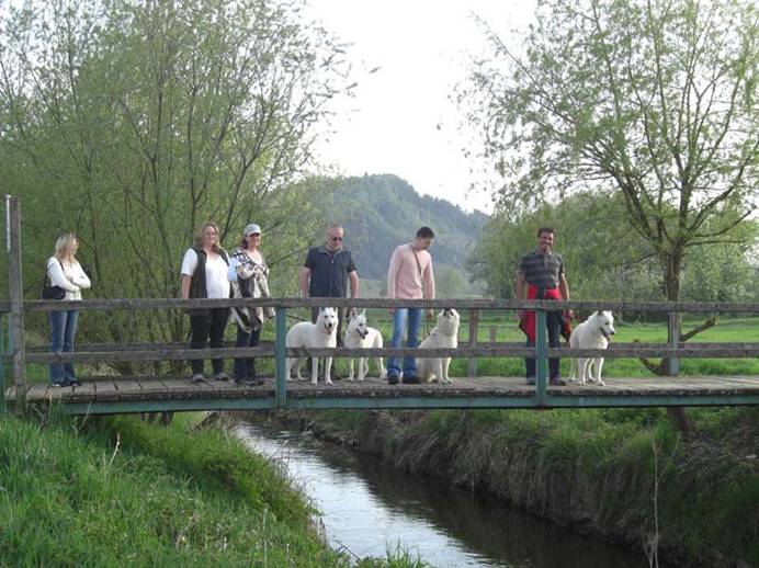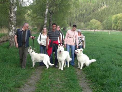 Von links: Bernhard mit Figo, Rainer u. Margret mit Eros, Raffaela mit Ria und Niki mit Chiara