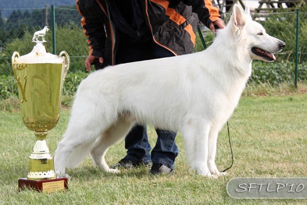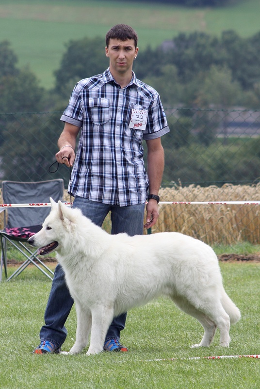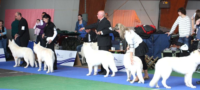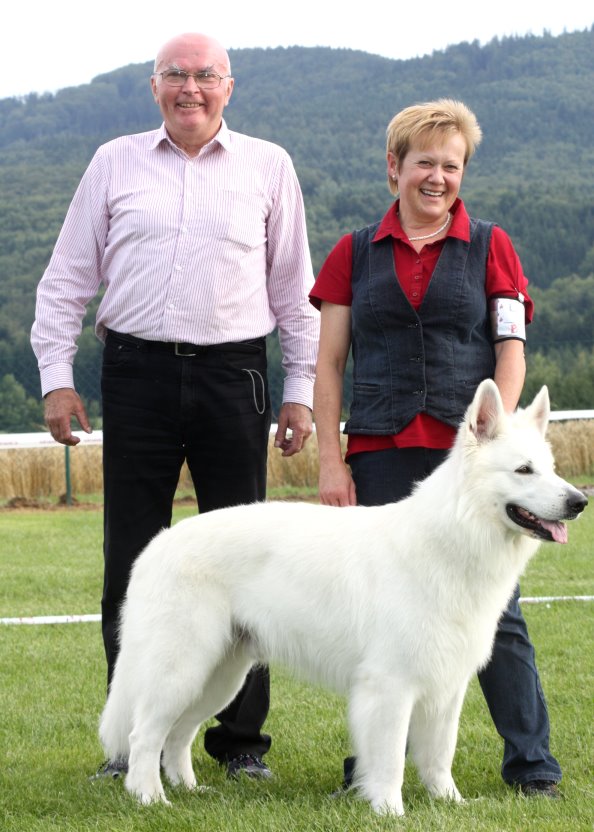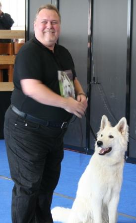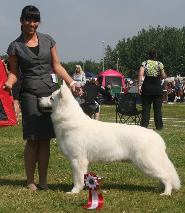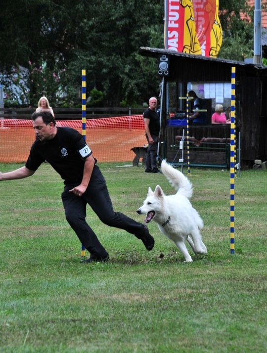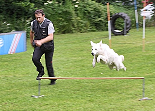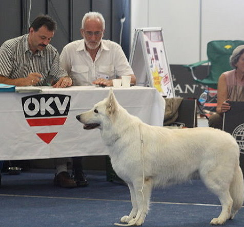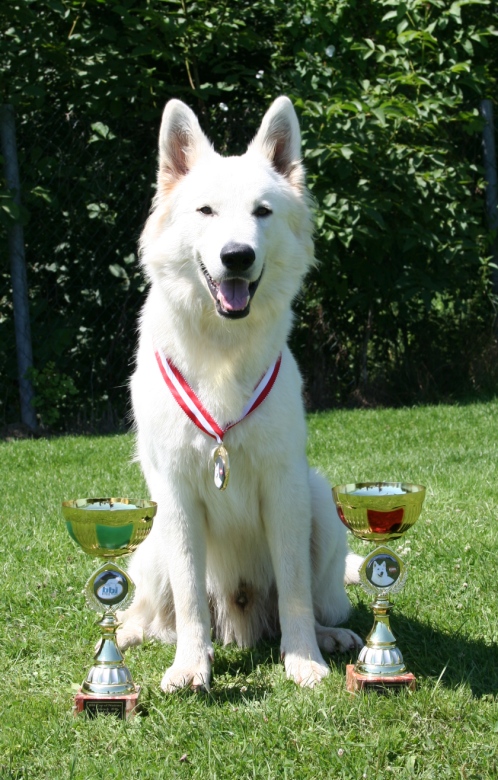 Aragon, einer der ältesten Hunde und einziger Weisser im Starterfeld, beeindruckte wieder mit einer hervorragenden Leistung ...Ausstellungen und Prüfungen!