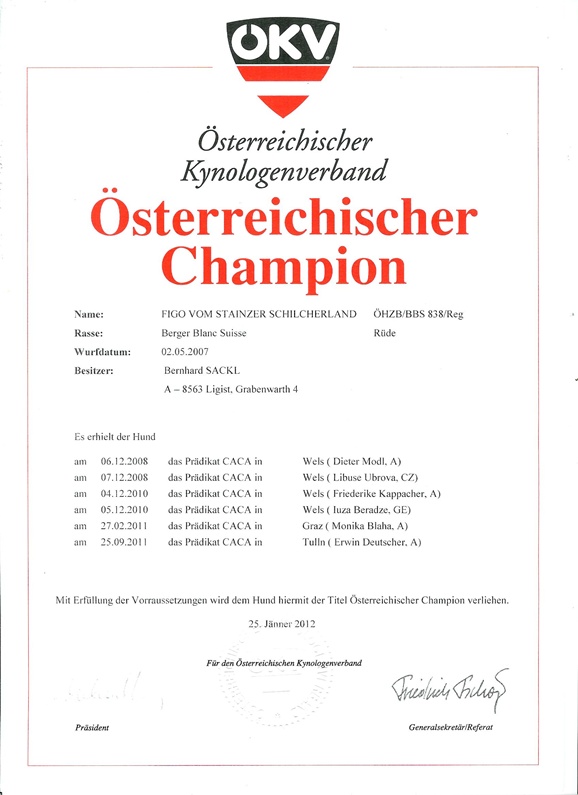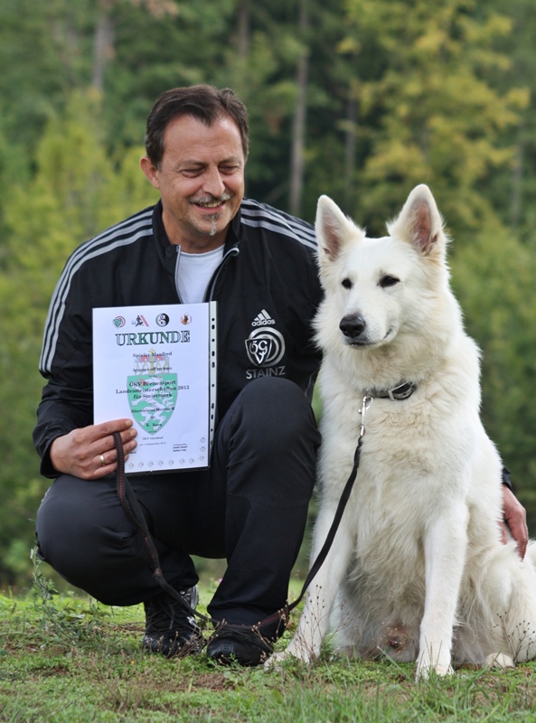 Auch Aragons Tochter Inja schaffte mit guten 84 Punkten die BGH 2. Von Mayeli - einer weiteren Aragon-Tochter - gibt es ebenfalls Erfreuliches zu berichten. Christian absolvierte mit seiner Hündin in der Österreichischen Rettungshundebrigade Voitsberg die RH-Eignungsprüfung in Fläche und Trümmer mit sehr gutem Erfolg. Als Draufgabe schafften die beiden einige Wochen später auch noch die BGH 1- Prüfung. Super!!... Ausstellungen und Prüfungen!
