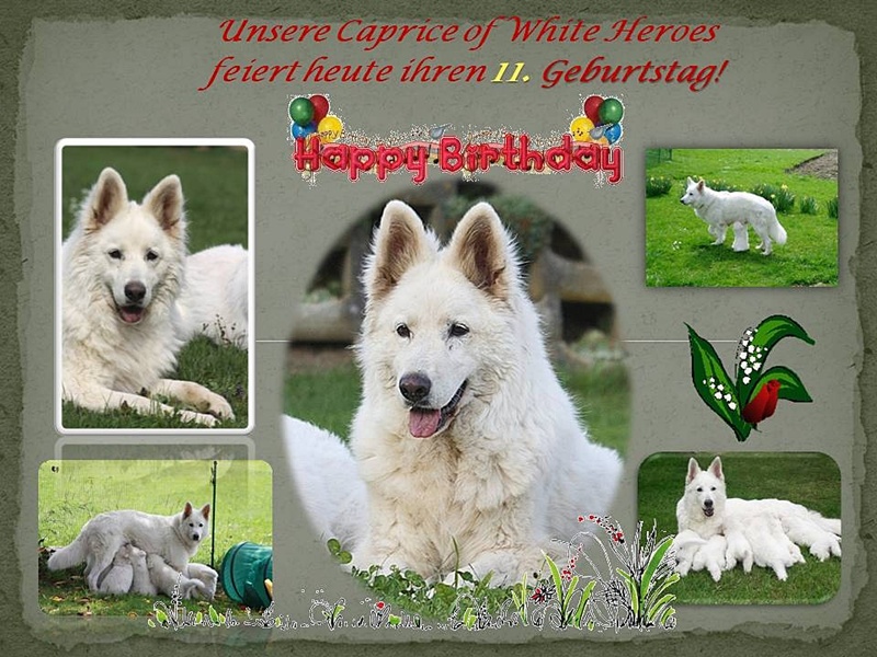 Caprice of White Heroes war die zweite Hündin, die wir in unserer Zuchtstätte aufnahmen. Inzwischen ist Caprice 11 Jahre alt geworden.