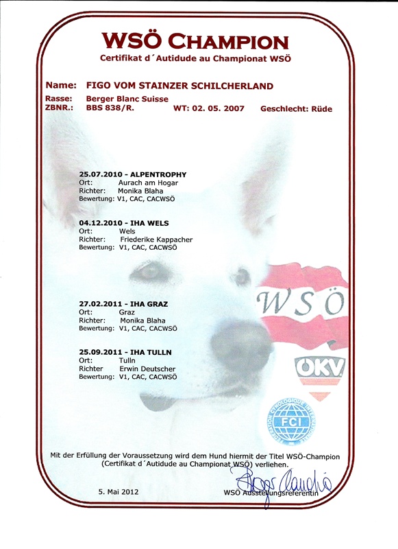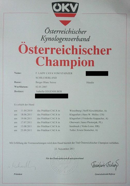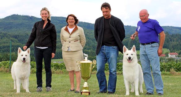 Nach dem Tod von Bianca im Vorjahr führt Caprice zweifelsohne das Regiment in unserem Rudel. Sie hat die BGH 1, BGH 2 und Breitensportprüfung absolviert und hat bei vielen Ausstellungen sehr erfolgreich teilgenommen. Sie war eine perfekte Mama und kann auf viele wunderbare und außergewöhnlich erfolg-reiche Nachkommen zurückblicken. Herausragend dabei sind die Erfolge von Crunch (FCI-Weltsieger 2010, dänischer, norwegischer, schwedischer und Nordic Champion), Florida Lady (rumänischer Champion), Figo und First Lady Caya (österreichische Champions) sowie den österreichischen Jugend-champions Einstein und Jukon. Last but not least unsere Costa-Rica, die 2006 Bundessiegerin wurde.