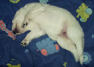 die 1 kg Grenze erreicht! Neben Mamas Rute und Popo schläft