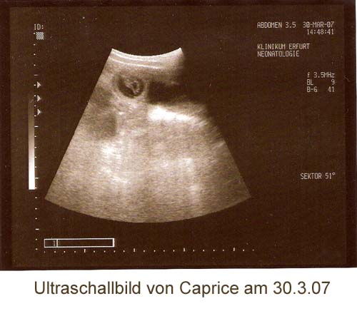 dass die Ultraschalluntersuchung bei Caprice ihre Trächtigkeit