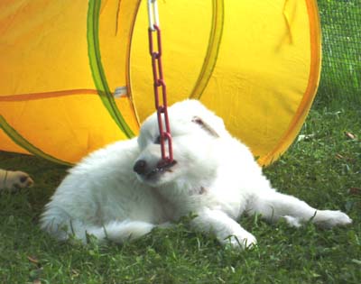 ist schon gespannt, wann wir das Zelt vernichtet haben.... |