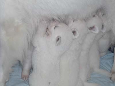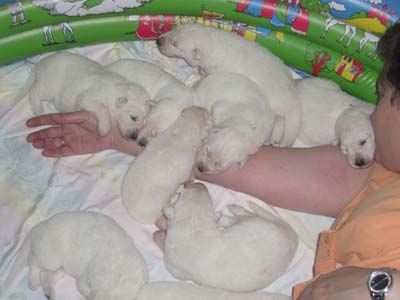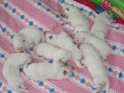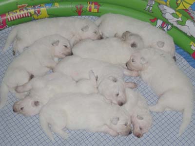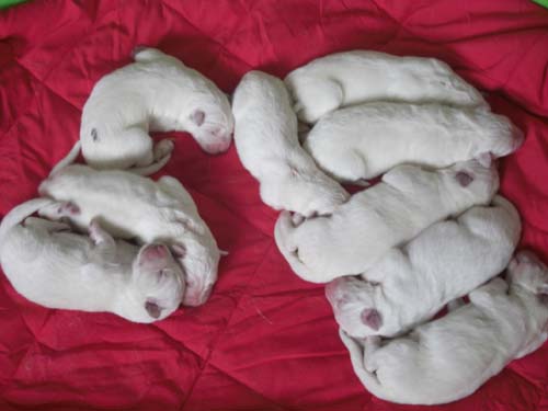 Das Geburtsgewicht der 9 Welpen betrug zwischen 500 g und 540