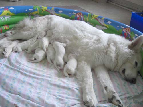 ganz einfachen Geburt hat Caprice ihre 9 Welpen zur Welt gebracht.