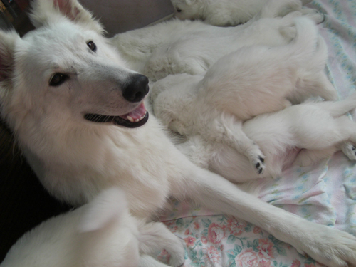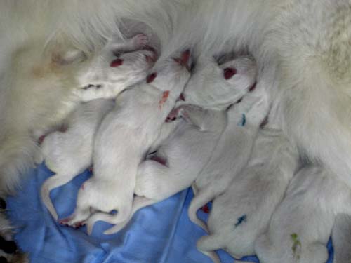 ganz toll. Um 1.02 Uhr ist der achte Welpe geboren, dann gabs