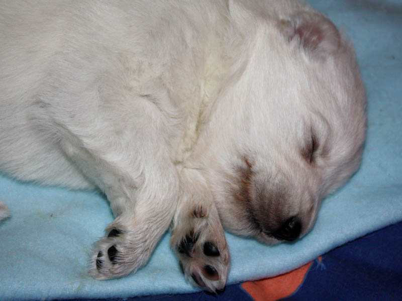 vorzüglichem Pigment, schwarzen Krallen, schwarzen Augen