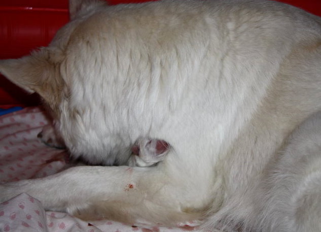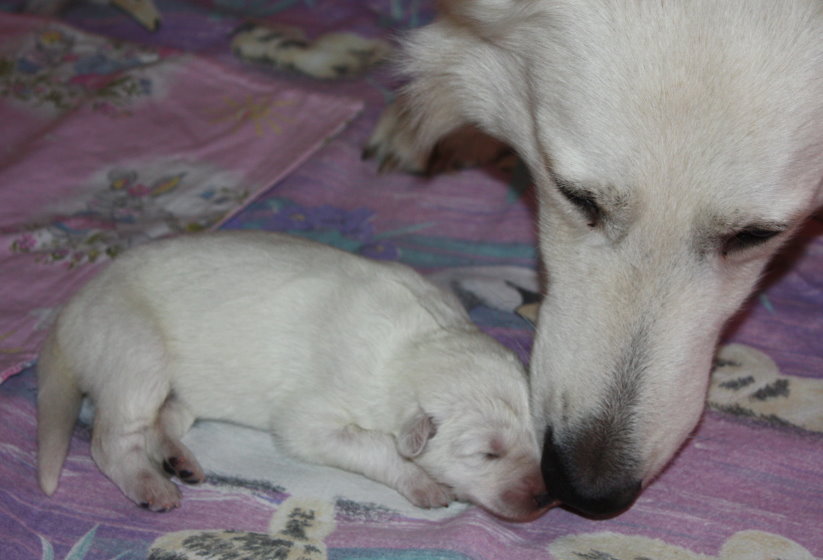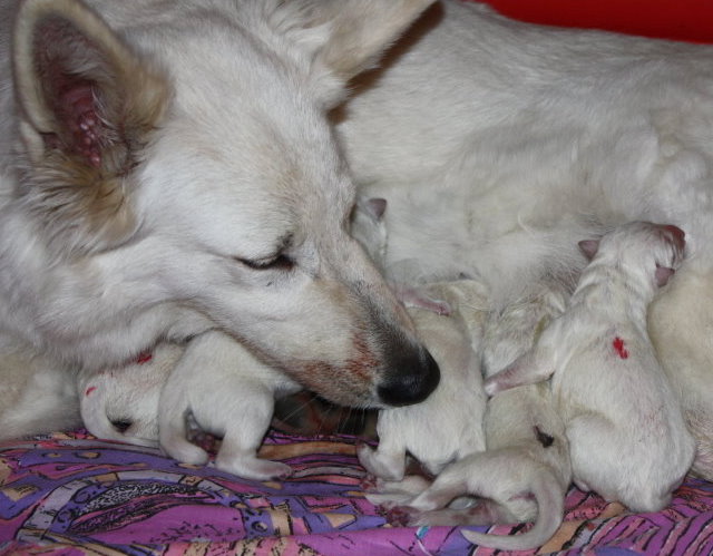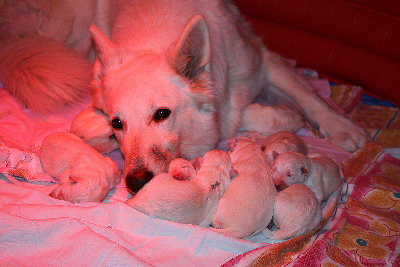 Na ja - knapp daneben, denn es ist doch der Jänner geworden. Auch bei der Geburt, die ohne Komplikationen verlief, hat es Rica wieder äußerst spannend gemacht. 2 Tage Überzeit.......aber nichts desto trotz: Costa-Rica hat uns acht gesunde und quirrlige Babies geschenkt. Von Sonntag auf Montag, um 0.50 Uhr wurde der erste Welpe geboren. In der Früh um 6.30 Uhr waren 7 Welpen geboren. Nach 2 Stunden Pause dachte ich mir, die Geburt ist vorbei, doch um 10.30 Uhr begann Rica noch einmal zu pressen. 11.00 Uhr: Der letzte Welpe kommt zur Welt. Die vier Rüden und vier Hündinnen sowie Mama Rica sind alle wohlauf - Gott sei Dank alles gesund und munter! Hier die ersten Fotos......