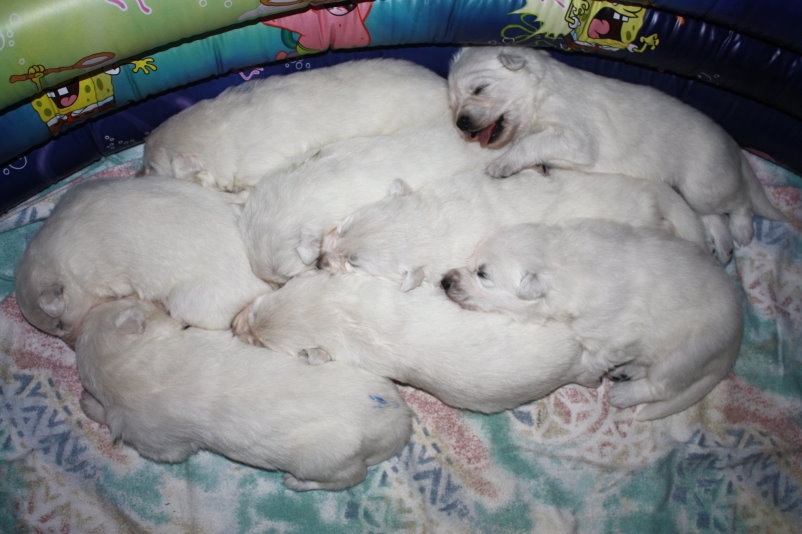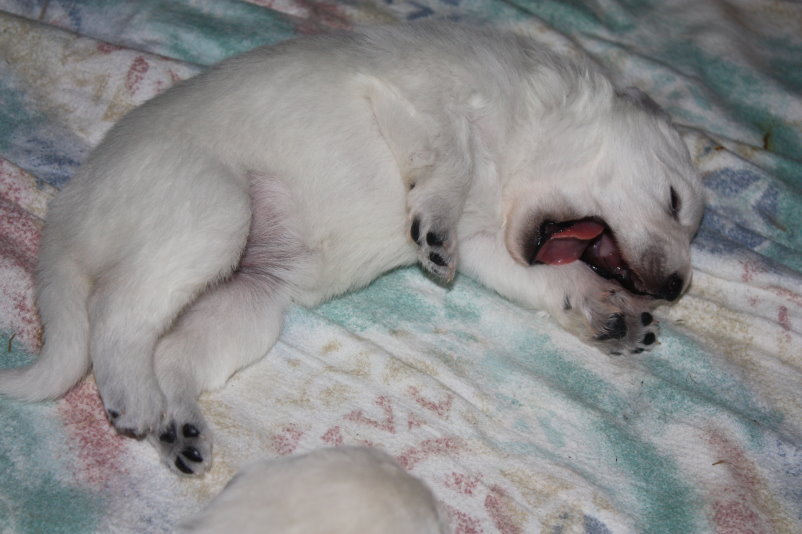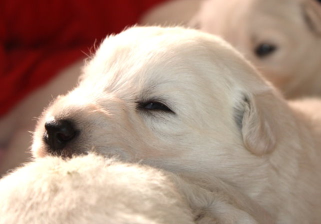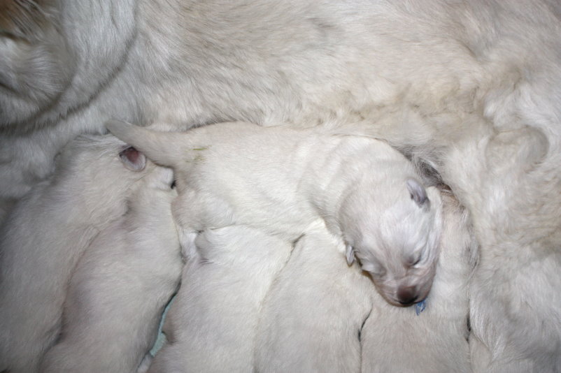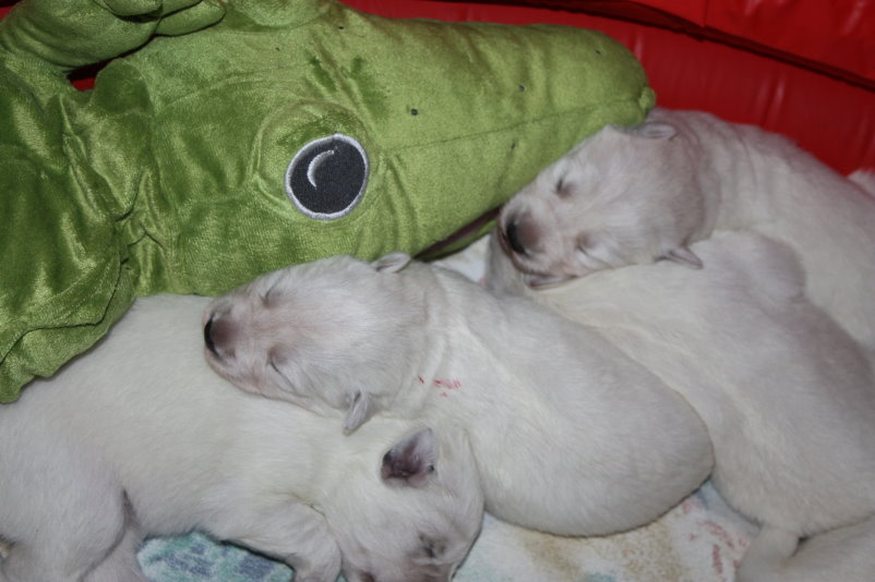 Hauptbeschäftigung der Welpen nach der anstrengenden Geburt ist derzeit natürlich Schlafen.... |