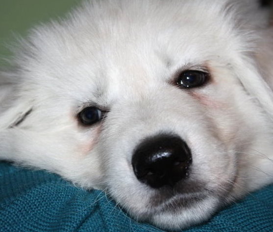 Auffällig ist das extrem dunkle Pigment von Nase, Lefzen und Pfoten |