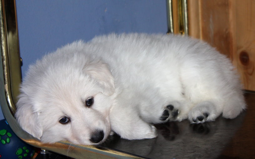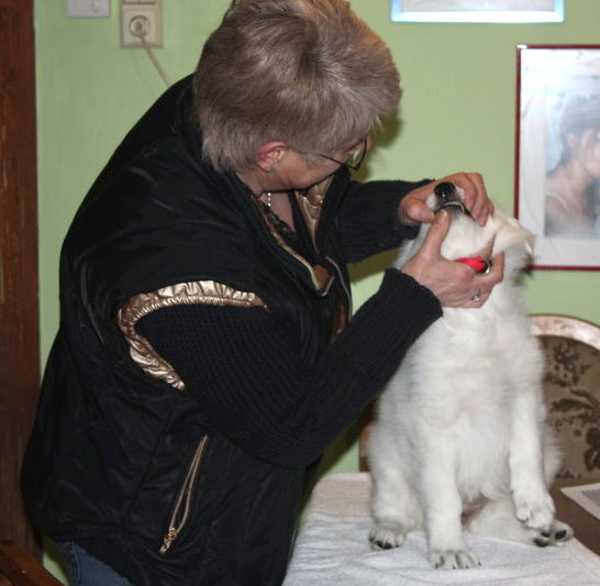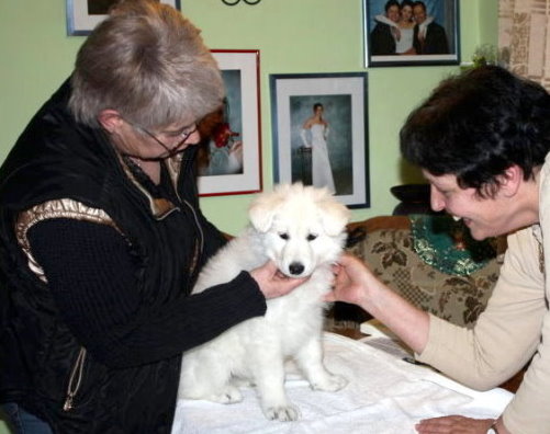 Fachkundige Rudelführer hat die kleine Love Lisa mit Andrea und Johann aus St. Pölten erhalten, die bereits einen weißen Schäfer geführt haben |