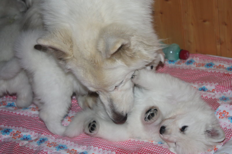 Doch wenn die Welpen munter werden, geht es schon ziemlich rund.... |