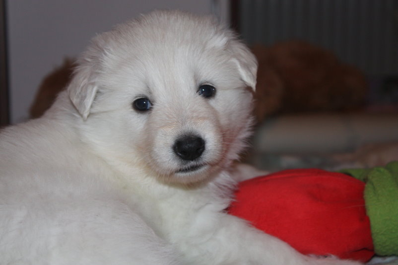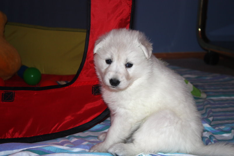 | Jetzt befinden sich die Welpen schon in einer derart aktiven Phase, wo sie kaum noch zu halten sind. Sie sind unternehmungslustig, wollen und dürfen alles kennenlernen und sind daher am liebsten auch schon im Freien. Das bedeutet aber auch, dass sie bald zu ihren neuen Familien kommen werden - lediglich die Wurfabnahme und die Kontrollen vom Tierarzt stehen noch aus. |