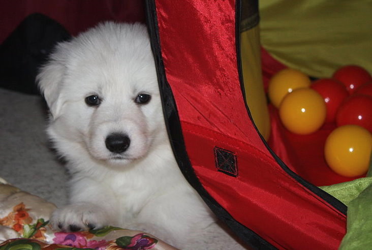 | Den Welpen gefällt es sehr, neue Spiele und Höhlen zu erforschen. |